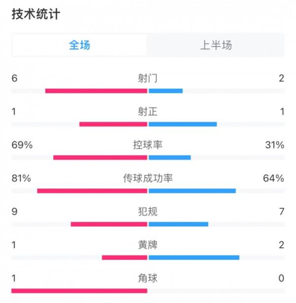 控球率:69%vs31%